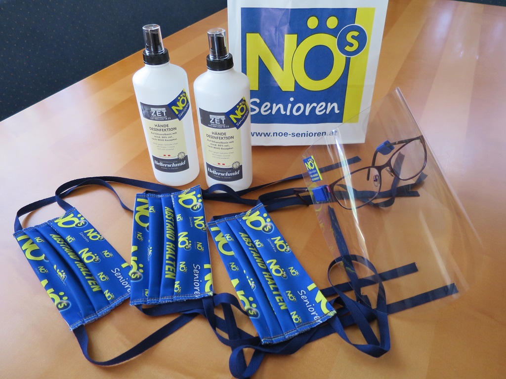Viele geplante Seniorenveranstaltungen mussten abgesagt und auf später verschoben werden. Seit Mitte März muss Abstand gehalten werden. In der Zeit der Ausgehbeschränkung haben die Jüngeren für die Älteren von uns Lebensmittel- und Medikamenteneinkäufe erledigt. Mund- und Nasenschutzmasken sind nun in gewissen Situationen notwendig. Viele von uns haben kurzerhand zu nähen begonnen, meist gleich für die ganze Familie und den Freundes- und Bekanntenkreis. Allseits spürt man jetzt schon die Freude auf die nächsten gemeinsamen Veranstaltungen, voraussichtlich ab September, auch mit Mund- und Nasenschutz und Handdesinfektion. Dazu erhalten unseren Ortsgruppen in den nächsten Tagen ein Packerl mit dem Inhalt wie auf dem Photo nebenan. Wir haben uns viel zu erzählen.